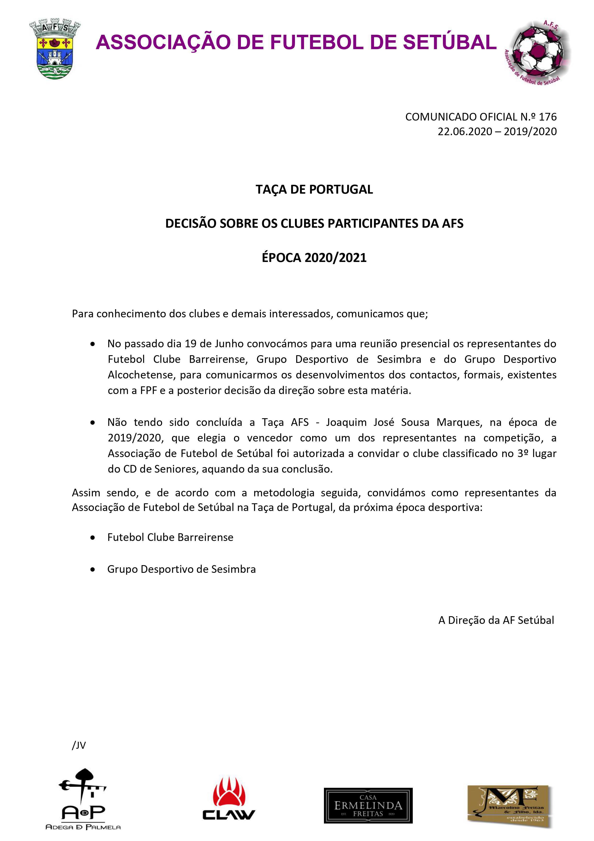AF Setúbal indica os clubes participantes na Taça de Portugal 2020/21